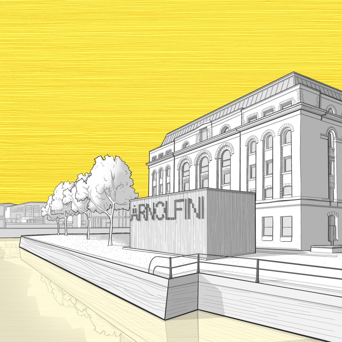 Keywords: Arnolfini art print, Bristol harbourside illustration, Robert Kann architecture drawing, contemporary wall art, colour-variant triptych.