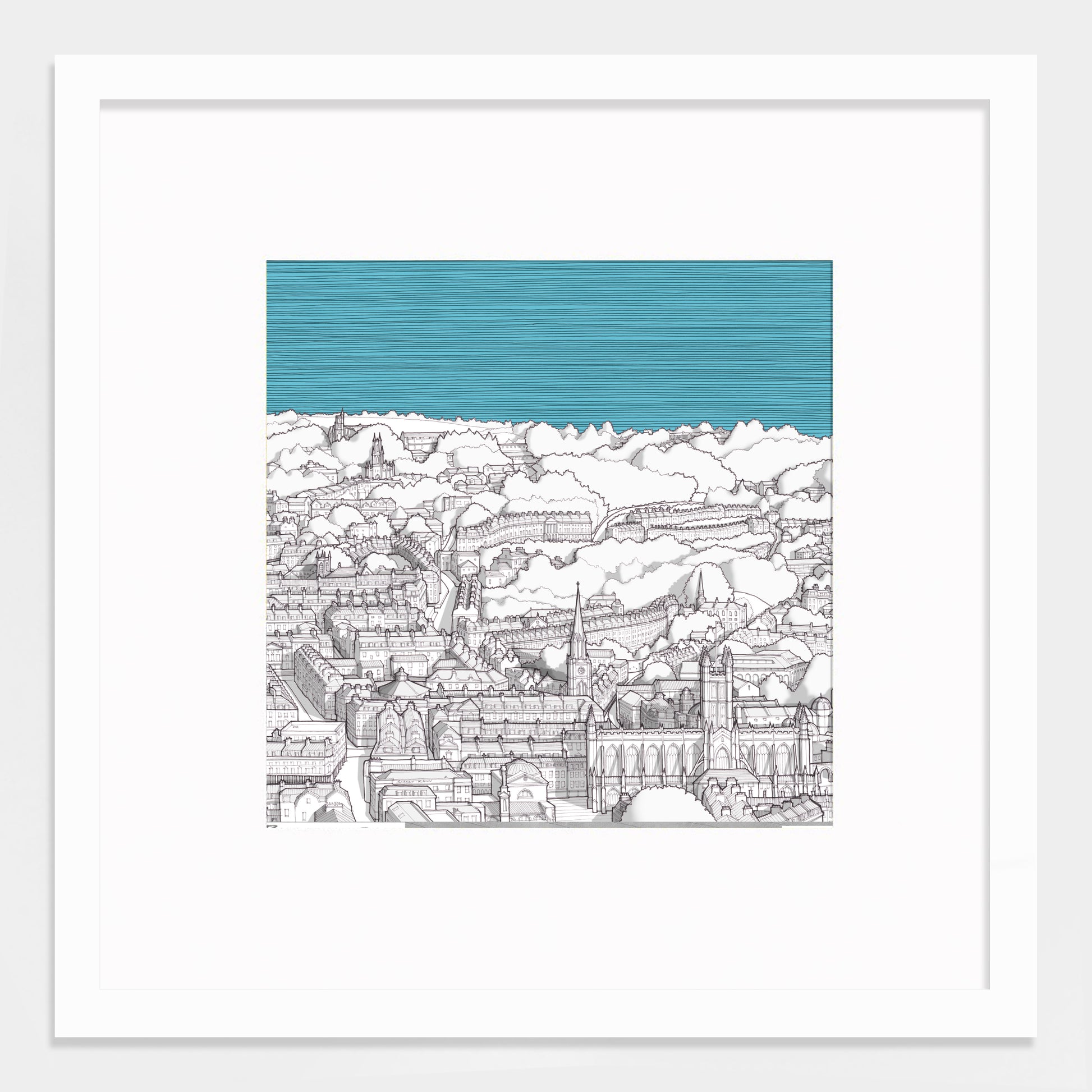 Limited edition giclee print of the beautiful World Heritage City of Bath. This painstakingly detailed illustration picks up on most of Bath's iconic landmarks.